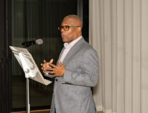 Former Ald. Burnett (27th Ward) accepting the Donna Ducharme Leadership Award
